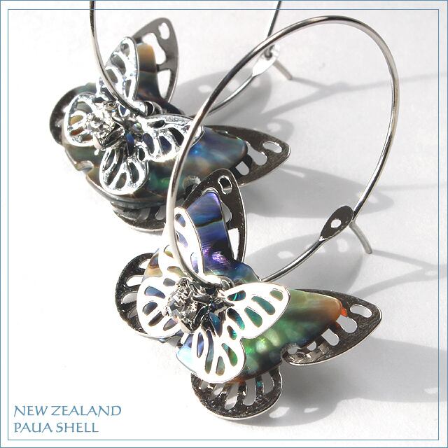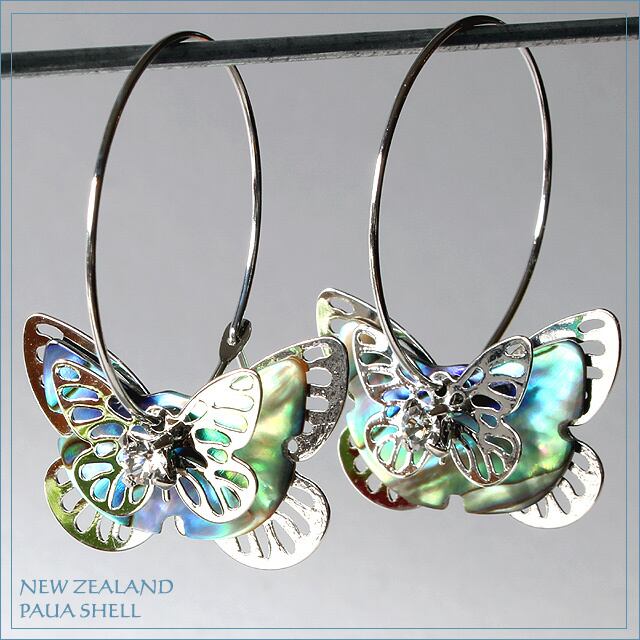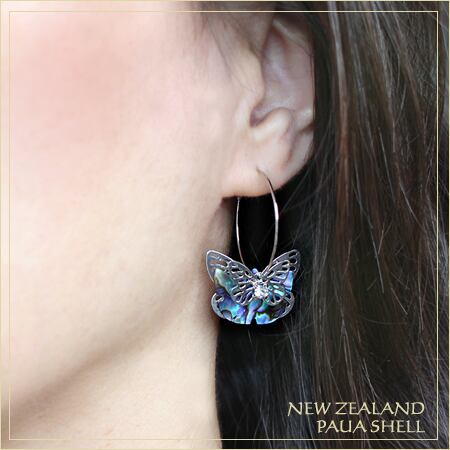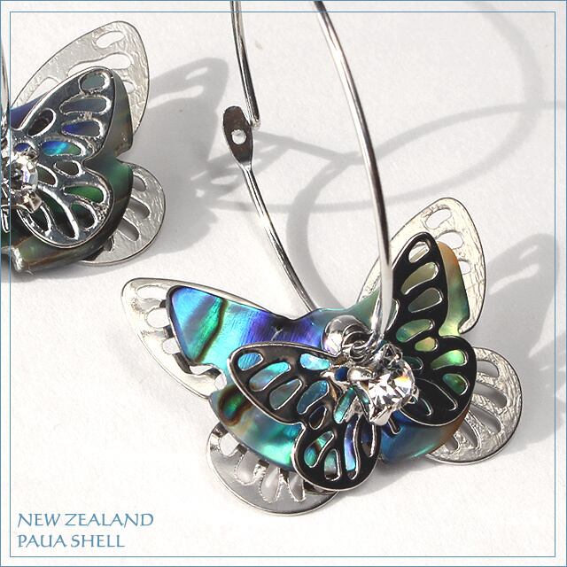 ◆天然シェル ニュージーランドのバタフライモチーフのピアス◆