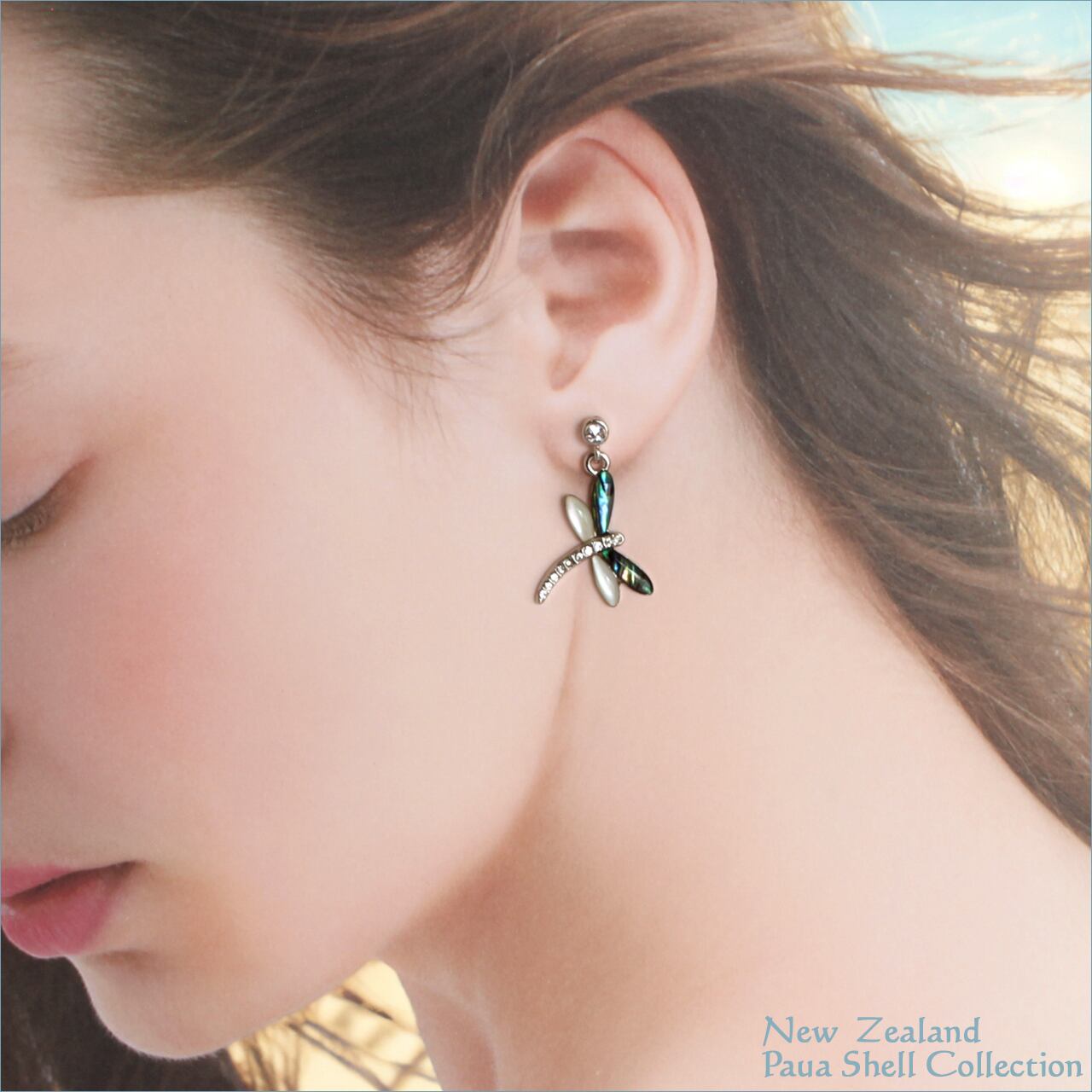 ◆ニュージーランド アバロンシェル トンボモチーフ ピアス◆