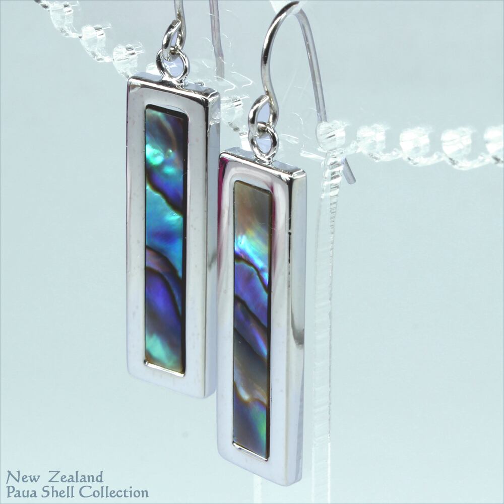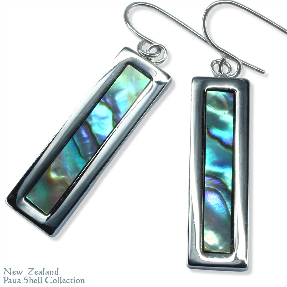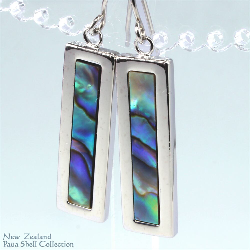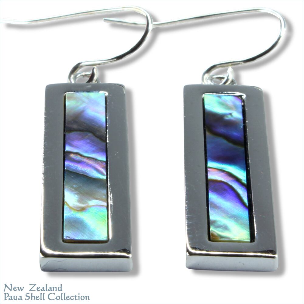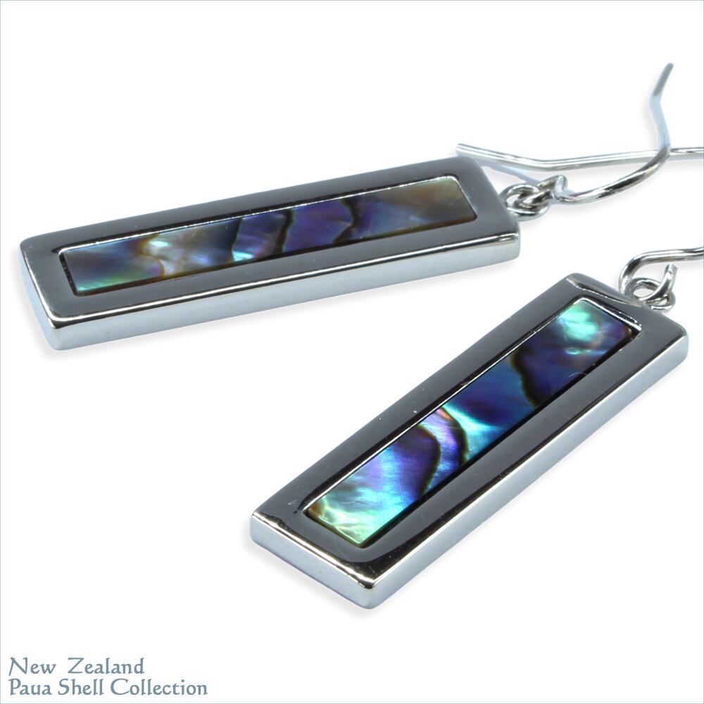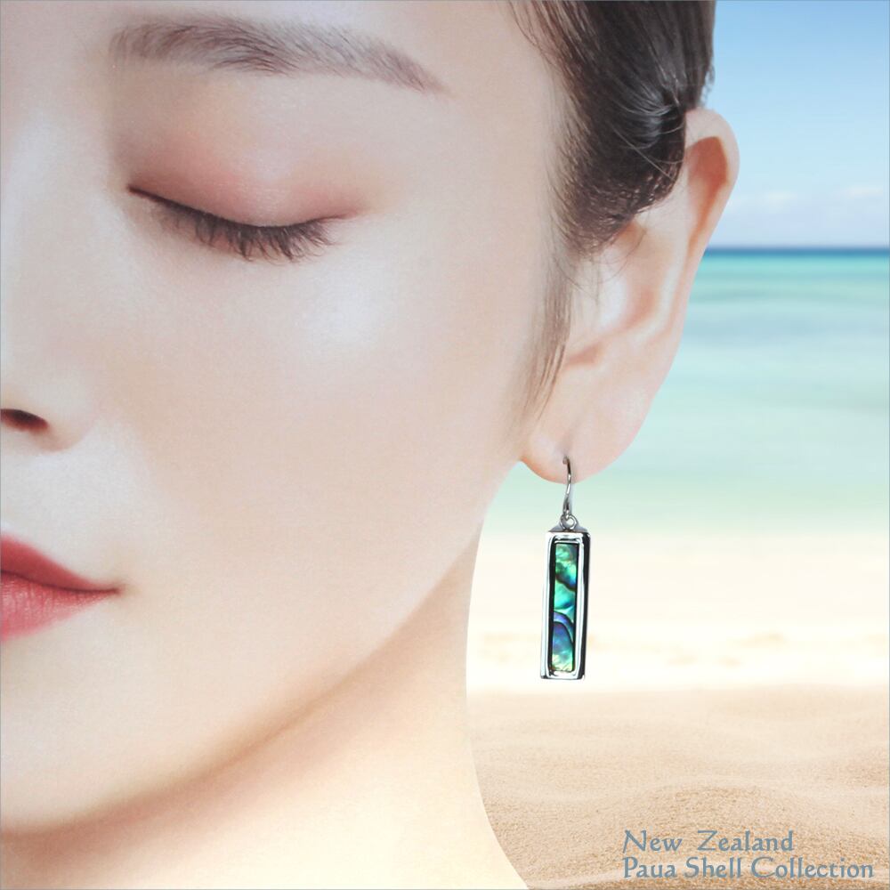 ニュージーランド パウアシェル シンプル レクタングルモチーフ ピアス
