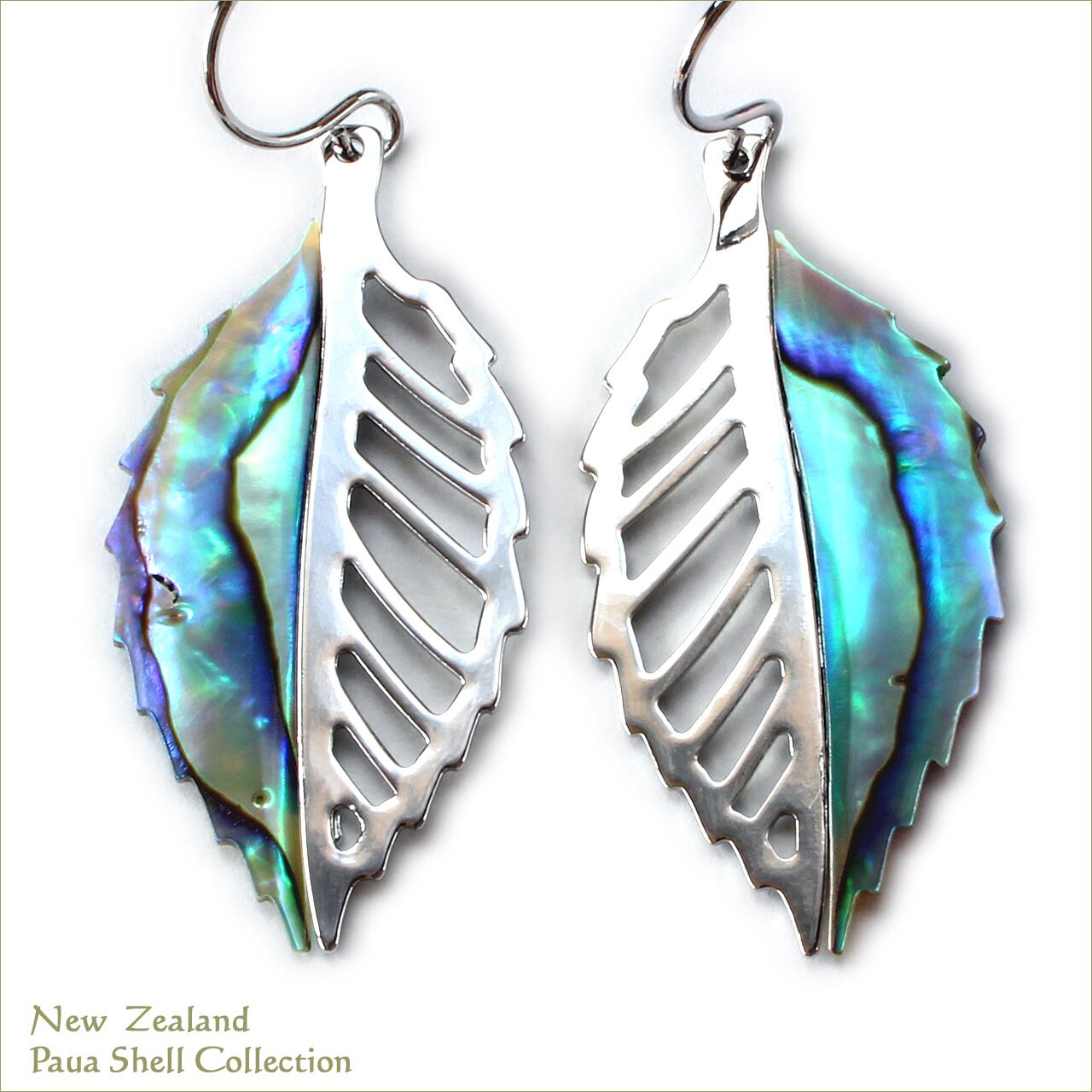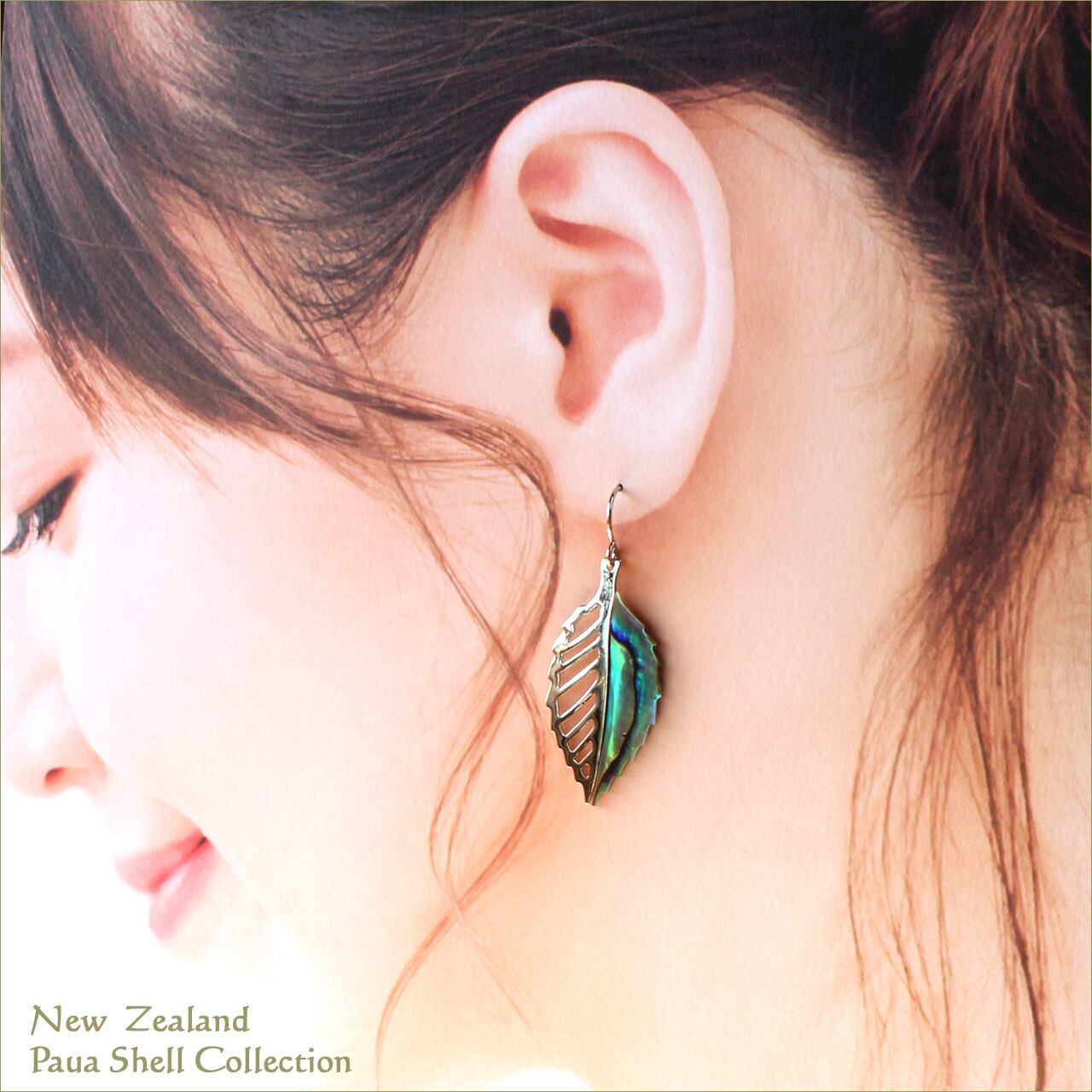 ◆ From ニュージーランド・天然パウアシェル・リーフモチーフピアス ◆