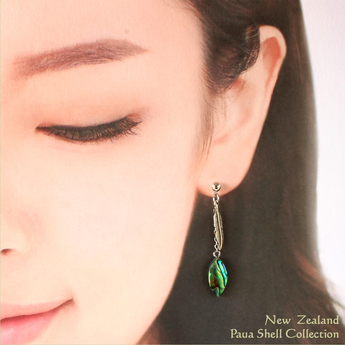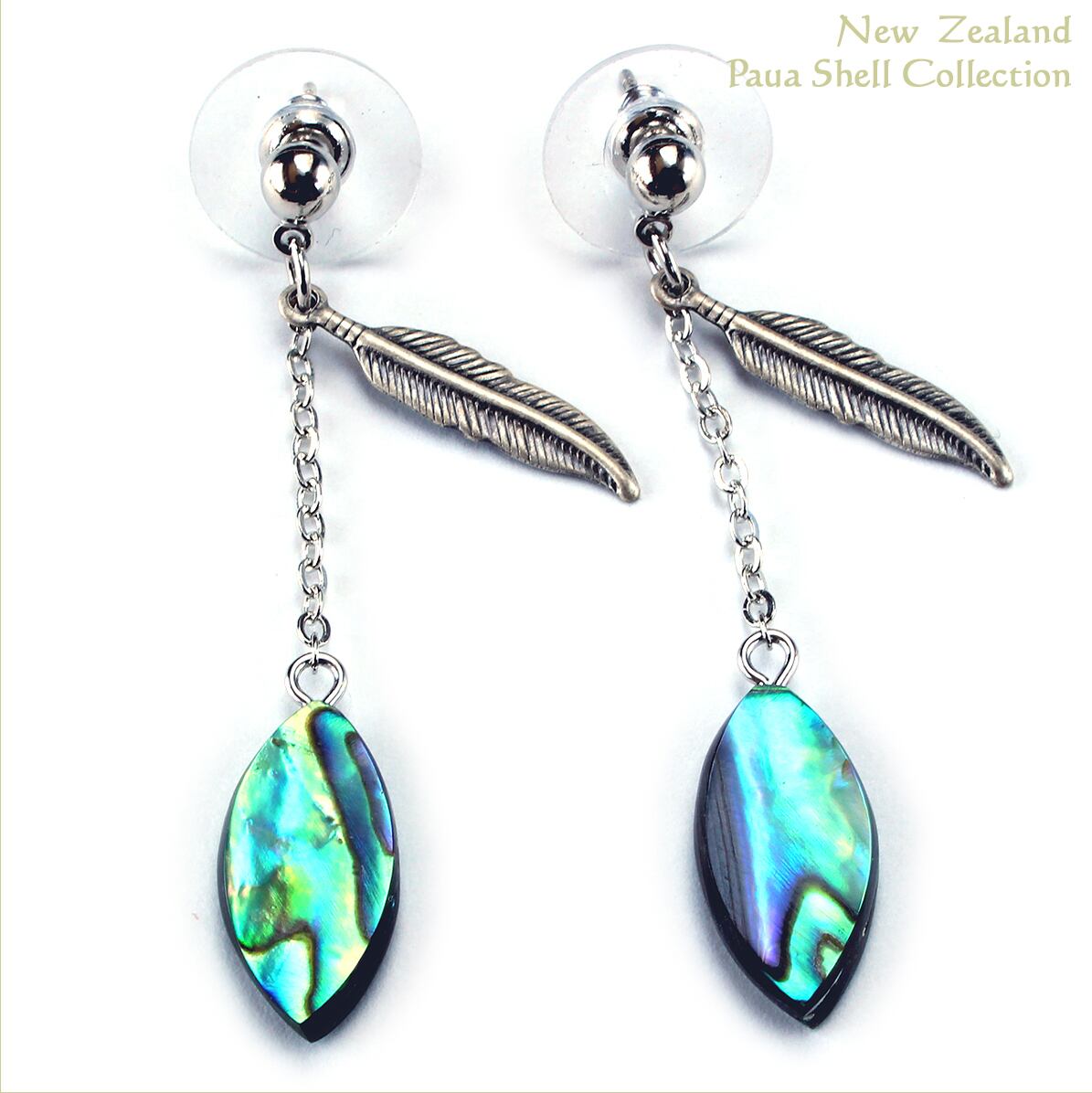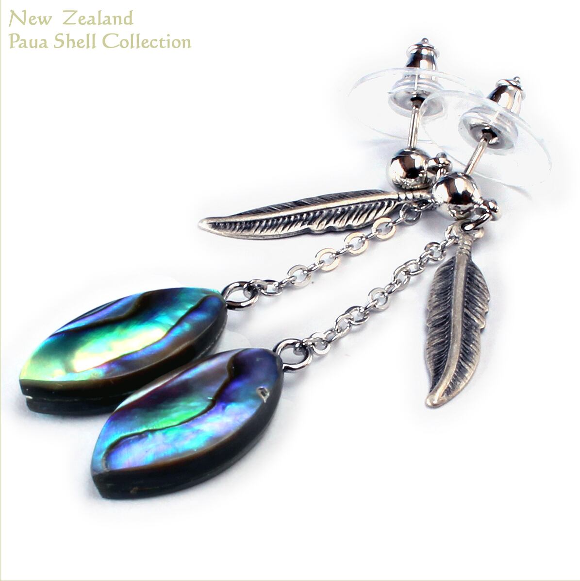 「パウア貝」でつくられたNZ直輸入のお品です。しずく型のモチーフが揺れる繊細なデザイン。