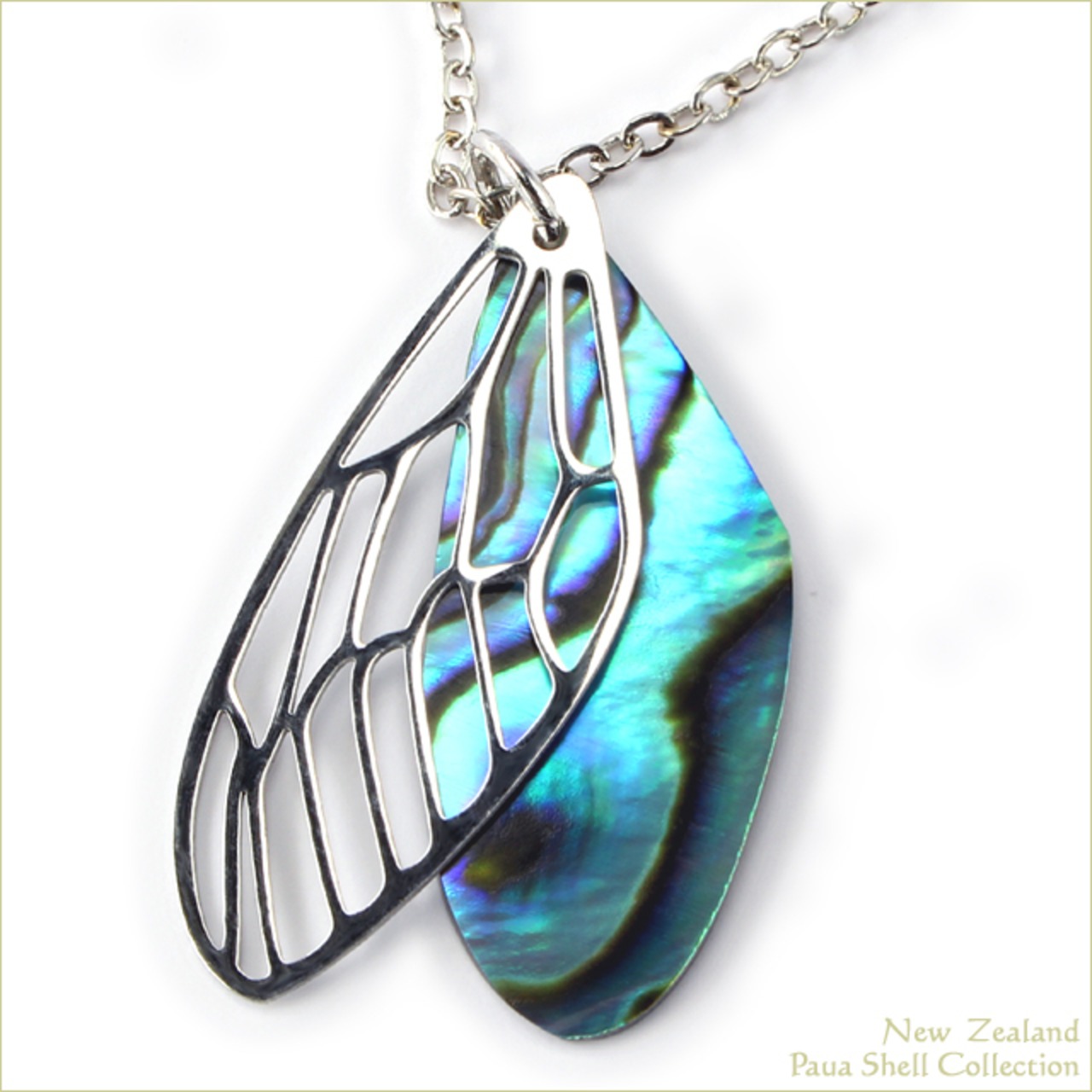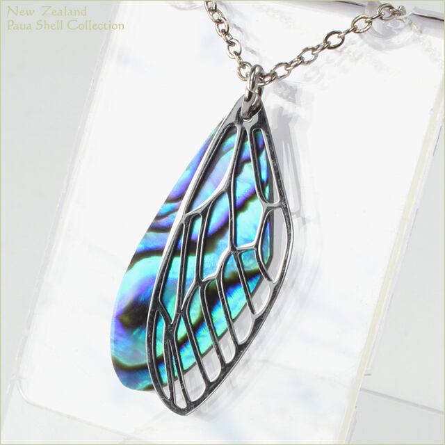 パウアシェル部分と透かし羽根部分が分離している動きあるデザインです。