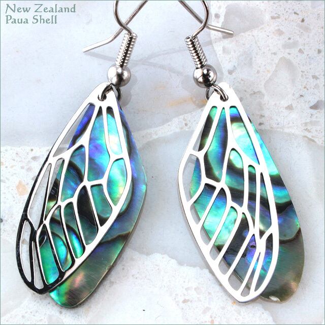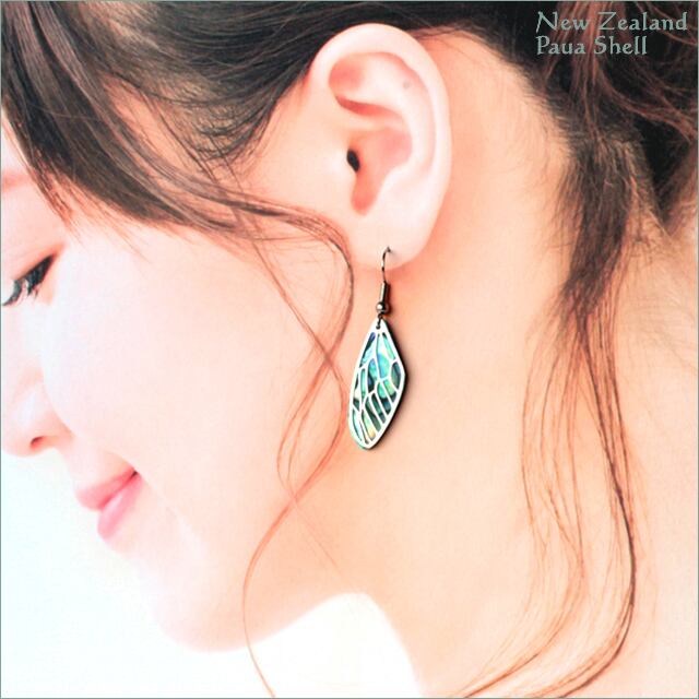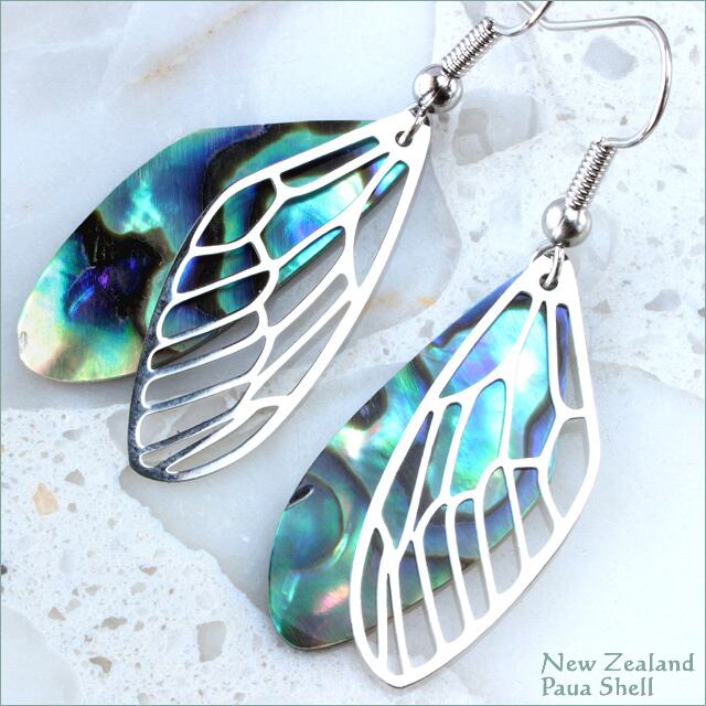 パウアシェル部分と透かし羽根部分が分離している動きあるデザインです。
