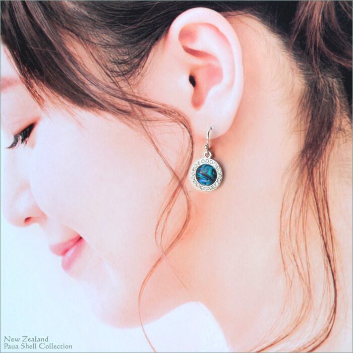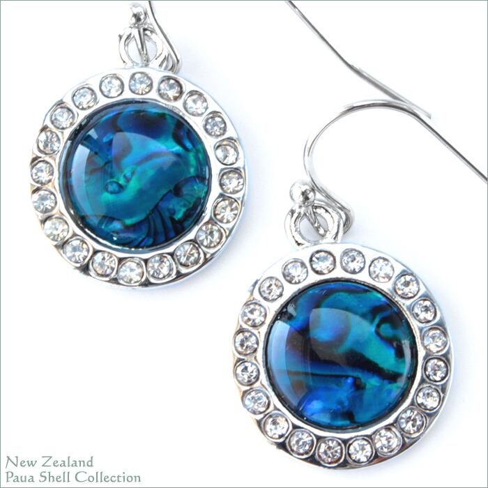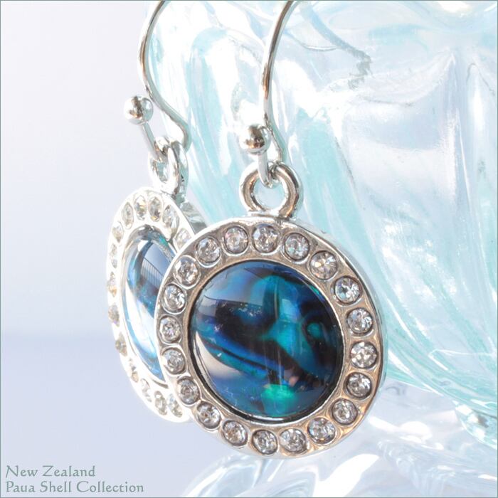 天然パウアシェル 金具:ロジウムメッキ ラインストーン