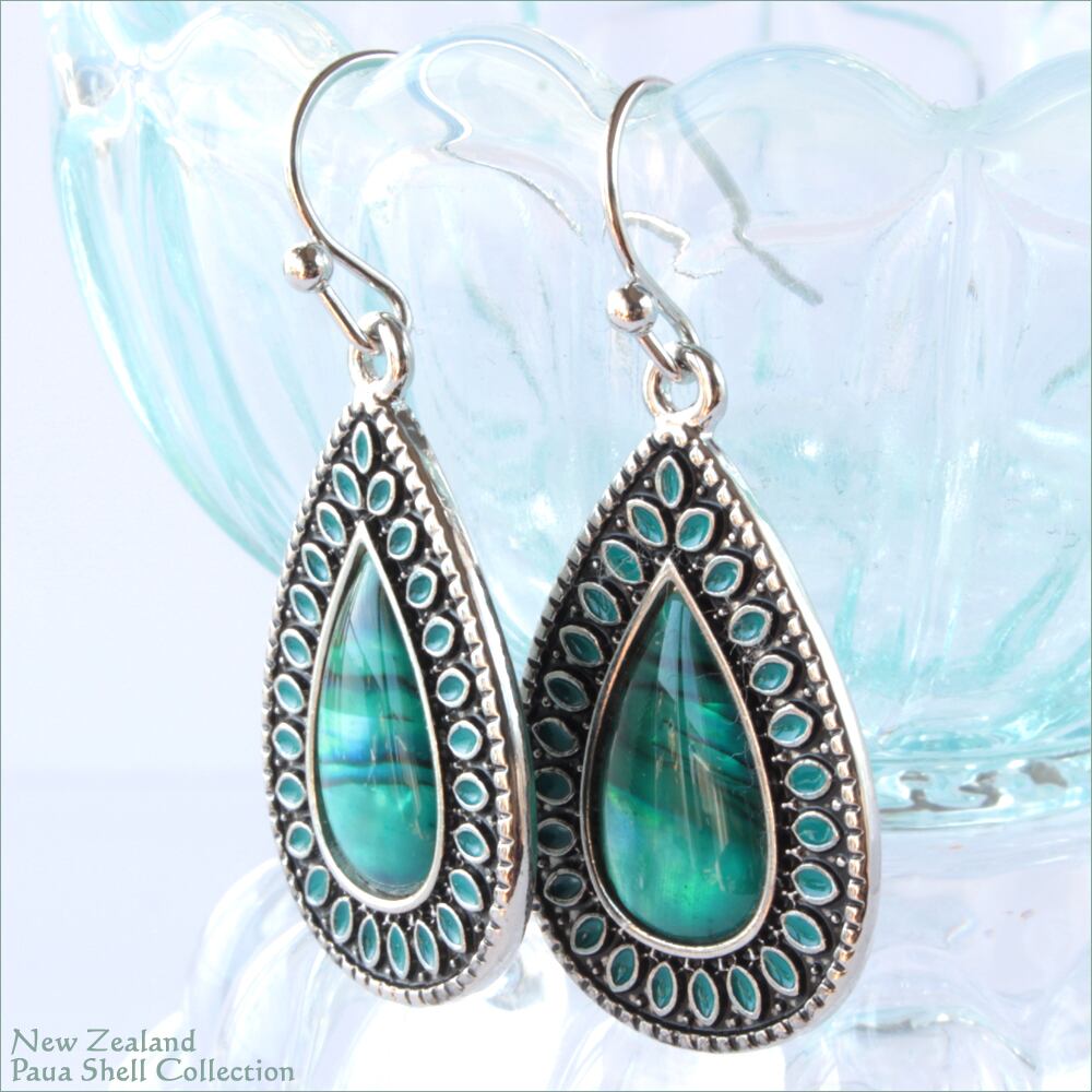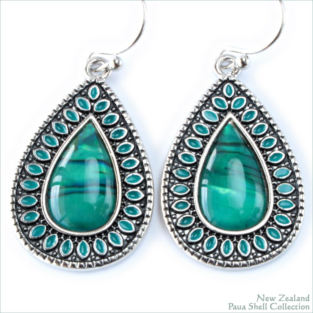 ターコイズカラー アバロンシェル ピアス ニュージーランド