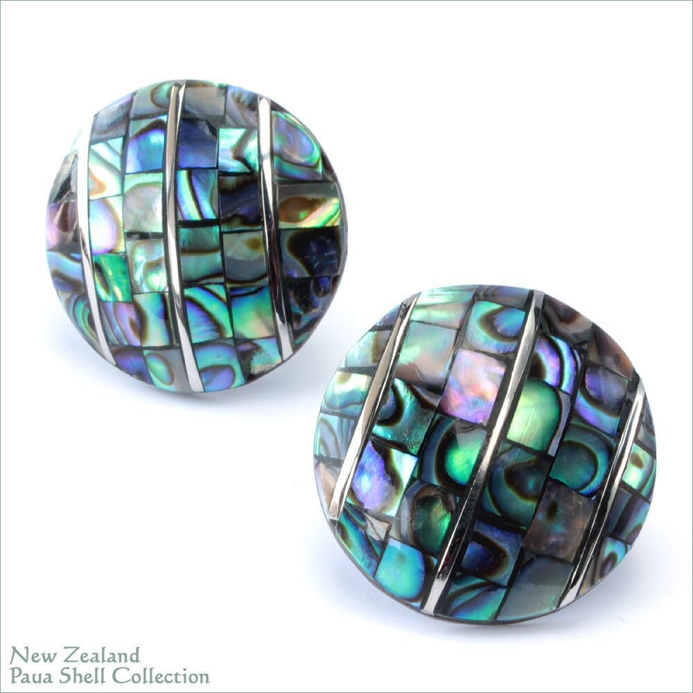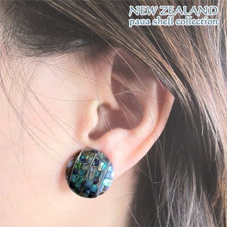 ◆ニュージーランド パウア貝モザイク細工のドームピアス◆