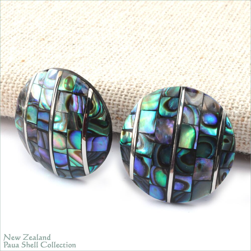 ニュージーランド パウア貝 モザイク細工 ドーム型 ピアス
