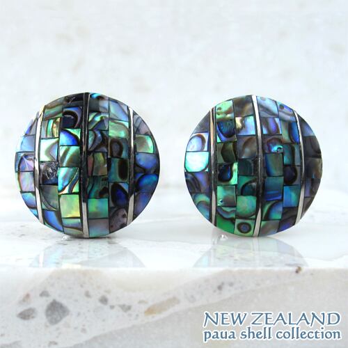 ◆ニュージーランド パウア貝モザイク細工のドームピアス◆